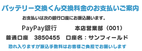 1.交換電池がお客様のところに到着後10日以内にお支払い下さい。